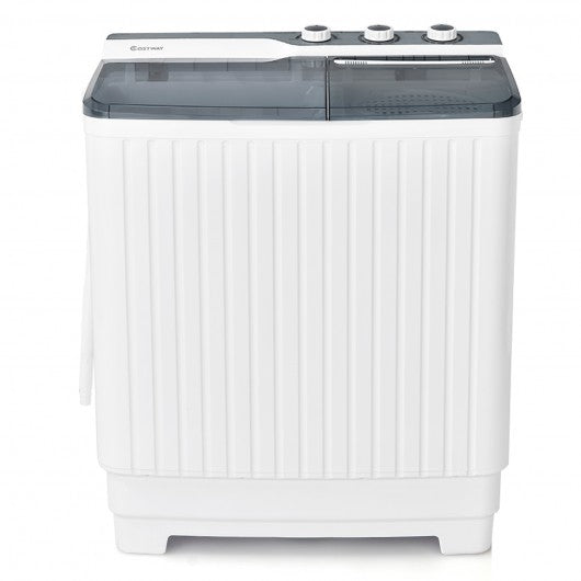 Our washing machine brings convenience to your life!   Our laundry washer can free your hands save your time and money. Featuring a twin tub washing design it combines spinning function and washing function as one for convenient use. Designed with 18lbs capacity for washing and 8lbs capacity for drying our washing machine facilitates convenient laundry for household use. What’s more it also features separate timer control settings and 3 washing modes for easy operation. Designed to be easily moved to any location this compact washing machine is suitable for camping trips dorms apartments or anywhere with limited space.   If you are looking for a washing machine like this do not hesitate to place an order! Twin tub design allows you to wash and dry clothes at the same time 20lbs washing capacity and 8.5lbs drying capacity for basic requirements Powerful motor enhances washing and drying performance Separate wash & dry timer for flexible operation 3 washing modes gentle normal and drain Durable plastic material serves for long time use Built-in drain pump is easy to drain out dirty water after washing The cover plate avoids the high speed throw away when using spin tub Suitable for dormitories apartments homes RV’s etc