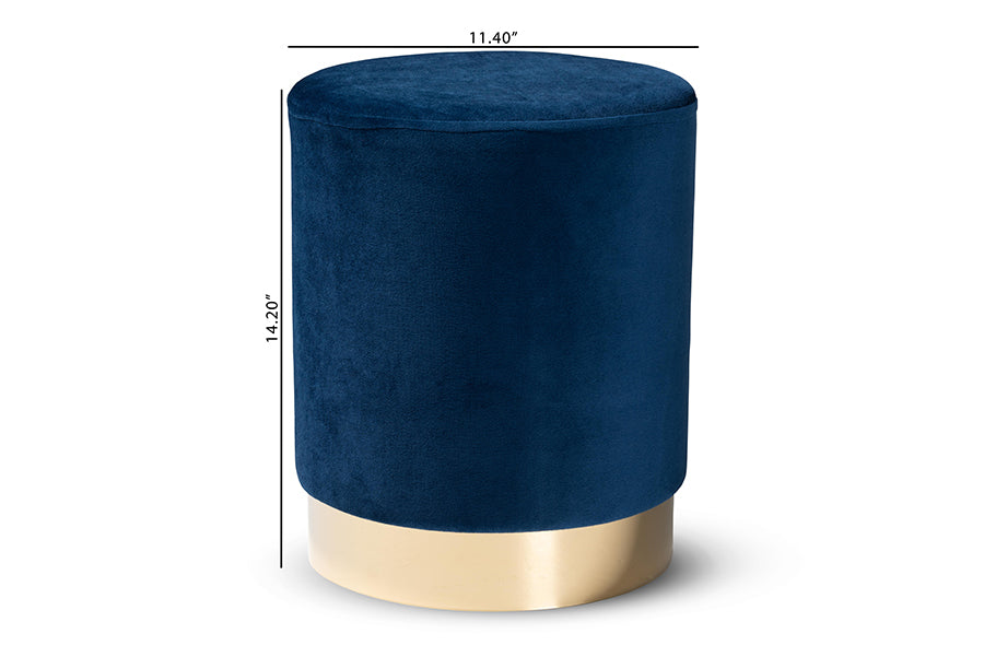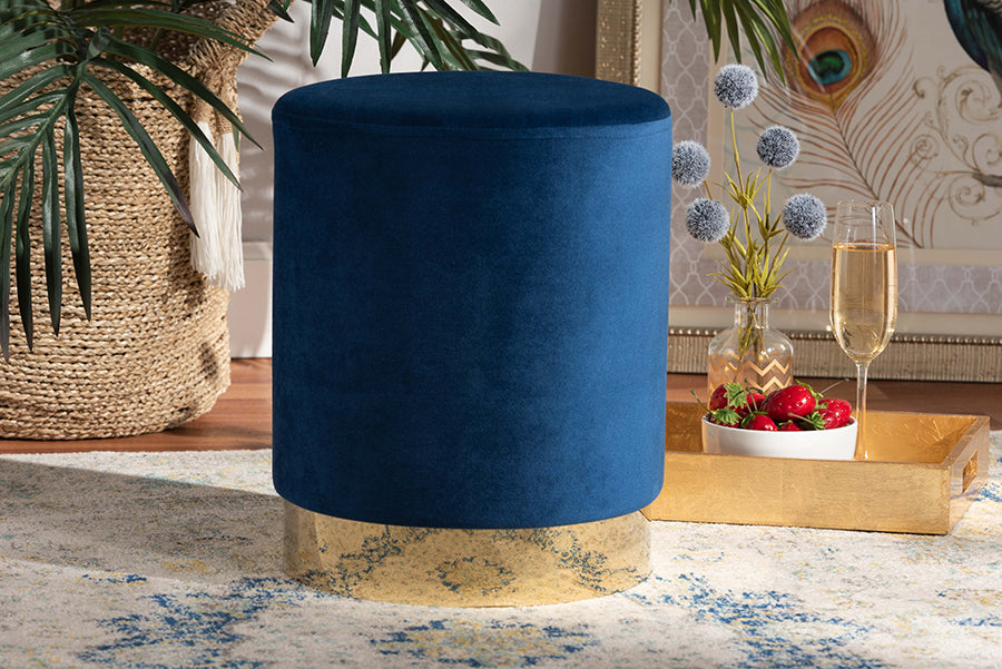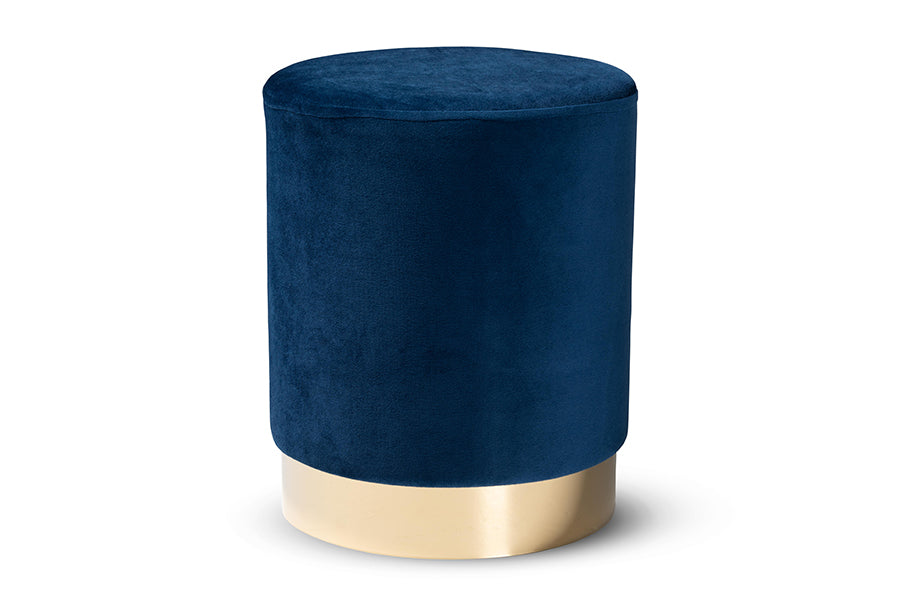 Baxton Studio Chaela Contemporary Glam and Luxe Navy Blue Velvet Fabric Upholstered and Gold Finished Metal Ottoman