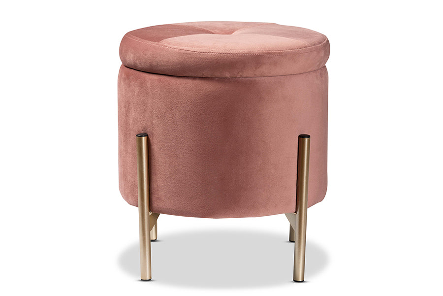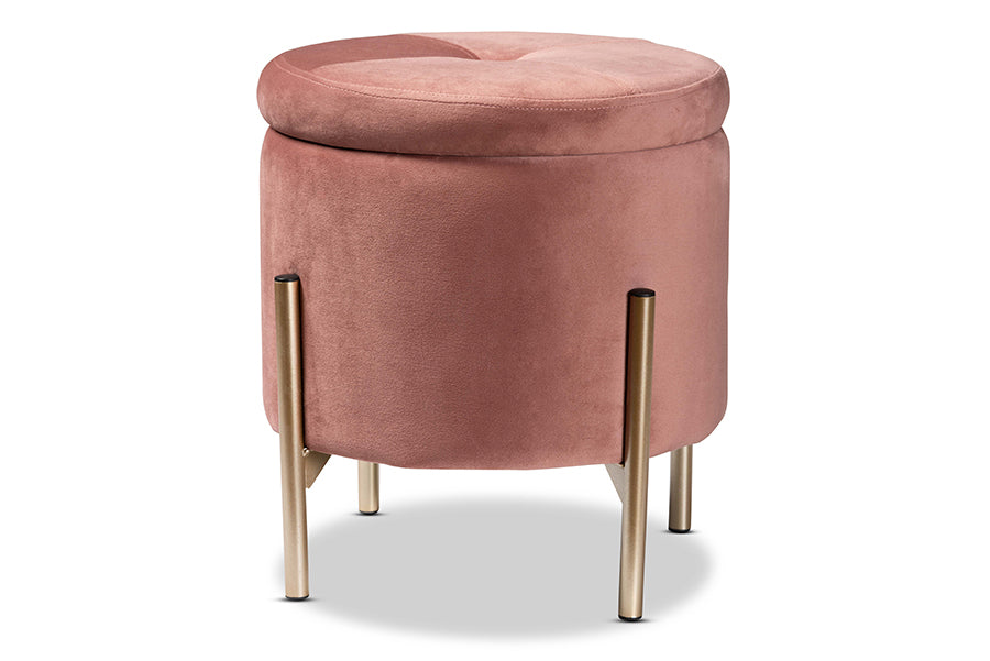 Baxton Studio Malina Contemporary Glam and Luxe Pink Velvet Fabric Upholstered and Gold Finished Metal Storage Ottoman