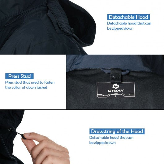 The whole jacket comes with multiple zippered pockets for safe storage of your cards or phones. And we only use the first-class YKK zippers which you will see our pursuit of details. We've got you a practical 3 in 1 jacket here would you like to take a look? It's a two-piece suit that you can wear the outer shell alone or the down jacket alone in spring and fall and you can wear both together in winter to keep warm. Isn't it practical? More to say is that the fabric is waterproof and windproof since it adopts seam taping craft to help it better seamless. The whole jacket comes with multiple zippered pockets for safe storage of your cards or phones. And we only use the first-class YKK zippers which you will see our pursuit of details. Plus there is a detachable hood which can be adjusted with a drawstring and you can remove it when you don't have one. It's so practical a jacket that features a simple business style and you won't miss it. If you are looking for a practical 3 in 1 jacket don't hesitate to get it for warm! Two-piece suit with three ways of wearing it Selected fabric comes with a waterproof index that reaches up to 8000mm/H2O and moisture-penetrability of 1500g/m2/24hr Seam taping enhances its windproof and waterproof effect Filling with 90% water repellent duck down for better warm performance and which dry faster in wet environments than ordinary ones Detachable hood with adjustable drawstring Use premium YKK zippers for the whole jacket Machine washable and won�t fade easily which has passed the AATCC standard The simple business style that suits a variety of occasions Tips for Clean and Care: a. Machine wash cold and tumble dry low b. Please do not bleach iron or dry clean c. Please wash with like colors d. The highest washing temperature shall not exceed 30 ?(86?) e. Please close all fasteners before wash