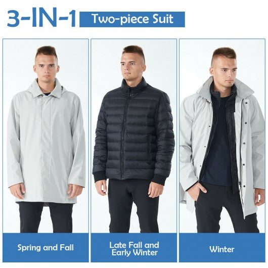 Men's Interchange 3 in 1 Waterproof Detachable Ski Jacket-Gray-XL