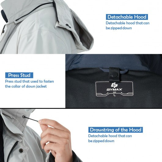 Men's Interchange 3 in 1 Waterproof Detachable Ski Jacket-Gray-XXL