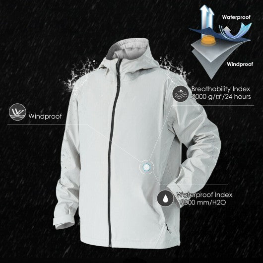 Men's Waterproof Rain Windproof Hooded Raincoat Jacket-Gray-XXL