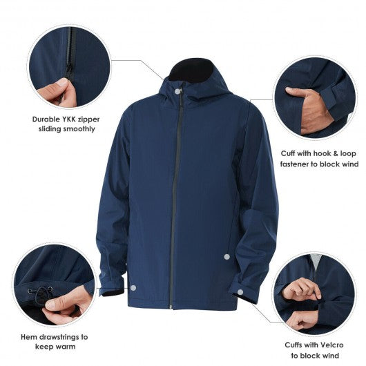Men's Waterproof Rain Windproof Hooded Raincoat Jacket-Navy-L