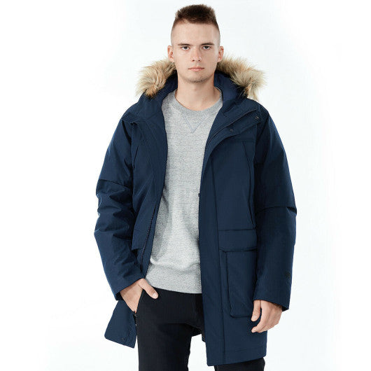 Men's Hooded Insulated Winter Puffer Parka Coat-Navy-XXXL
