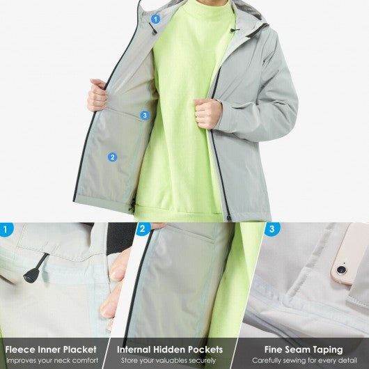 Women's Waterproof & Windproof Rain Jacket with Velcro Cuff-Gray-XXL