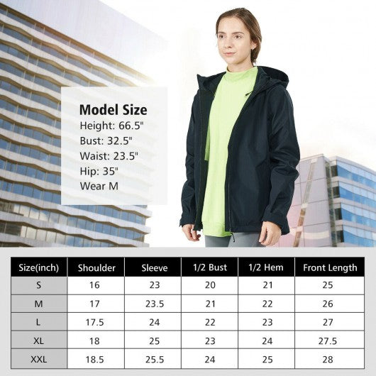 Women's Waterproof & Windproof Rain Jacket with Velcro Cuff-Navy-S