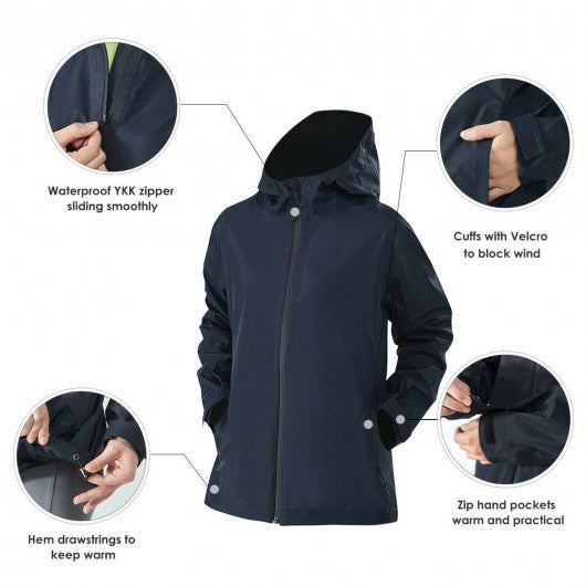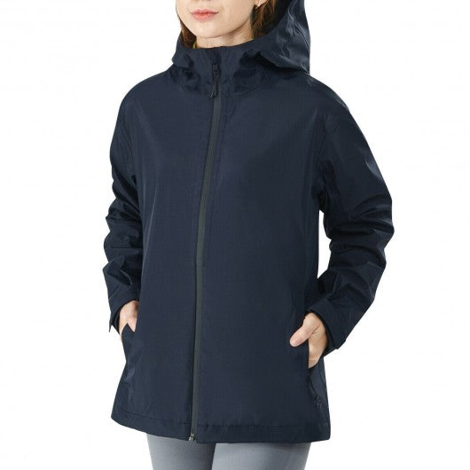 Women's Waterproof & Windproof Rain Jacket with Velcro Cuff-Navy-XL