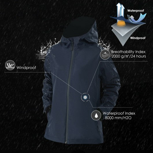 Women's Waterproof & Windproof Rain Jacket with Velcro Cuff-Navy-XXL