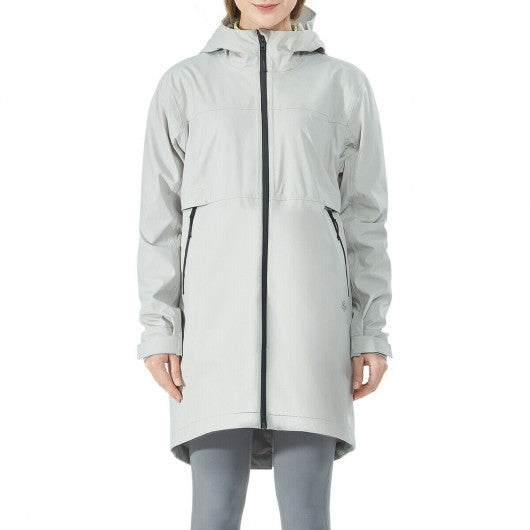 Hooded Women's Wind & Waterproof Trench Rain Jacket-Gray-M