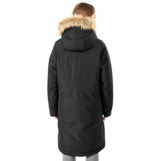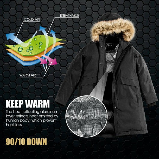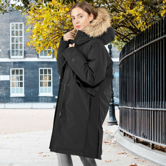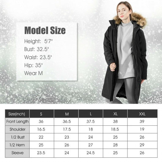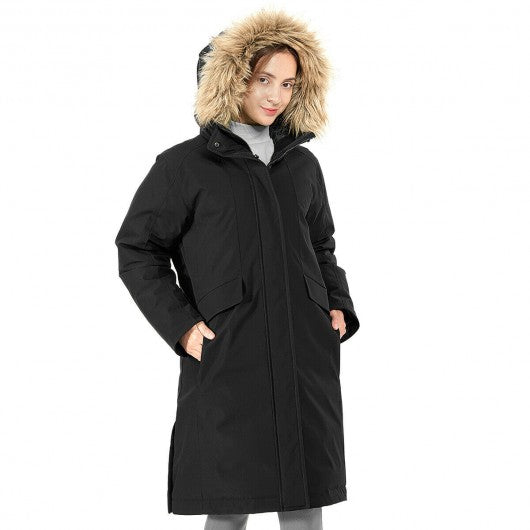 Women's Hooded Long Down Coat with Faux-fur Trim-Black-XL