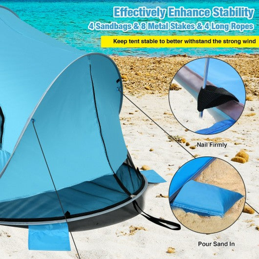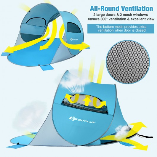 Pop Up Beach Tent Anti-UV UPF 50+ Portable Sun Shelter for 3-4 Person-Blue