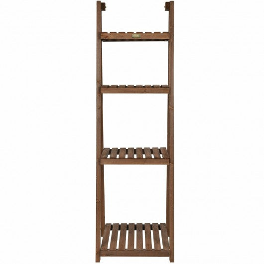This foldable 4-tier flower shelf is a perfect choice for you. It allows you to grow more plants to decorate your home. Made of 100% solid fir the flower shelf is sturdy and durable enough to serve a long service life. The trapezoidal frame makes it more stable and not easy to shake. Quick-folding design makes it convenient to transport and it can be stored in any compact space. Our 4 tiers freestanding plant shelf can also be used as an organizing shelf shoes storage shelf and bathroom shelf. With this shelf your home will become tidier. This wooden plant stand is definitely unique to light up the room! If you are looking for it don't hesitate to buy it! 100% natural solid fir construction for durability Trapezoid framework which is stable and sturdy Suitable for both indoor and outdoor use 4-tier shelves for more storage space Lightweight design for convenient transport Foldable design can be easily stored for saving space Guide rail behind the upper layer prevents things from falling The surface is painted with water-based paint for using in wet space The hollow design of the laminate for air permeability and drainage The height between each layer is tall enough to accommodate a variety of plants The pastoral style matching your home decoration harmoniously No installation required