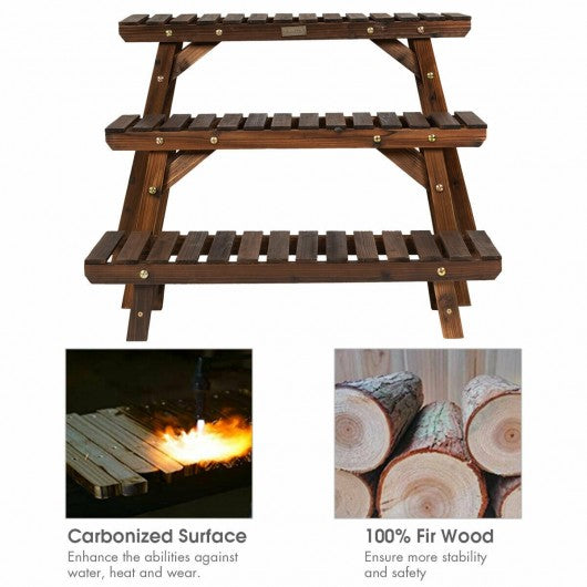 This plant holder is made of solid carbonized fir wood the plant stand is durable and not easy to deform. Three racks can be used separately or combined with different ways. Plus the hollow and scattered shelves of this plant stand are great for water drainage and ventilation. Each rack with diagonal feet and reinforced support will firmly hold flowerpots and the maximum load reaches up to 22 pounds of per layer. The staggered step has enough space to show the plants and help them to get enough sunlight. They are great for placing in living room balcony and patio wherever you want. It is also easy to maintain and assemble this stand. Do not hesitate to buy it for your plant! Premium wood frame contributes to durability and sturdiness Each layer of the plant stand is independent and can be arranged at will Staggered steps provide plenty of room to grow Opening design provides good air permeability and light permeability Thick cedar slats are carbonized at high temperatures Each layer of rack can hold up to 22 pounds Perfect for both indoor and outdoor use with space saving design Provide you with simple instruction and minimum care for the stand