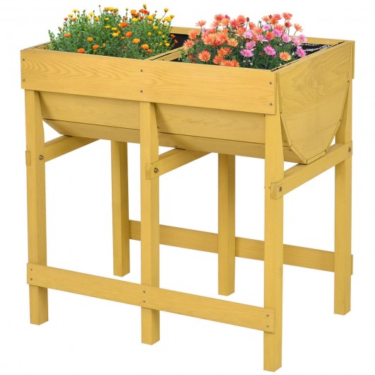 The raised wooden flower planter with a good quality is perfect for people love planting flowers and other plants.   The planter made of wood has a natural look and is sturdy durable which can serve you for a long time. It has a fine design and is raised and standing which is easy for you to use. Designed in this way you can do the planting without bending down. It makes your gardening work easier and more comfortable.   The flower planter is a good display of garden. Are you interested in flower planting? Come and buy it!   High quality and brand new Natural wooden material Sturdy and durable wooden construction Humanized design Comfortable and easy for you to use Good decoration in your garden Wonderful for outdoor planting Assembly required Comes with black rasid bed Liners for any hard