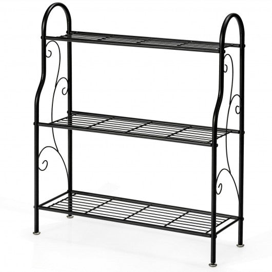 3-Tier Scrollwork Designed Metal Plant Stand-Black