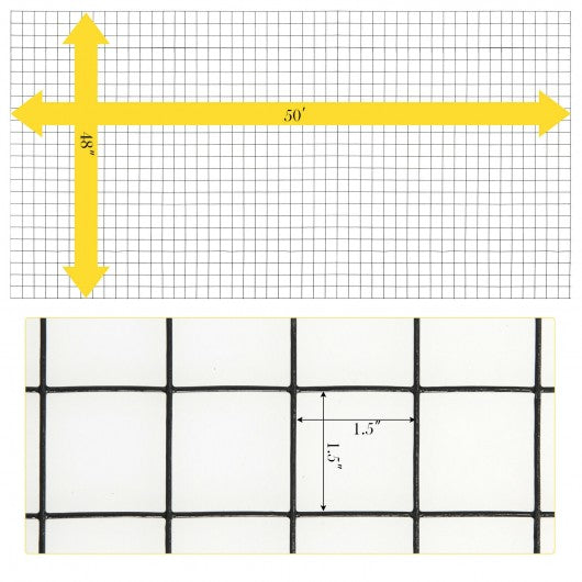 Specification: Color: Black Material: Steel Vinyl Overall dimension: 48" x 50' (L x W) Mesh dimension: 1.5" x 1.5" (L x W) Wire diameter: 16gauge Net weight: 22lbs Package includes: 1 x Wire mesh