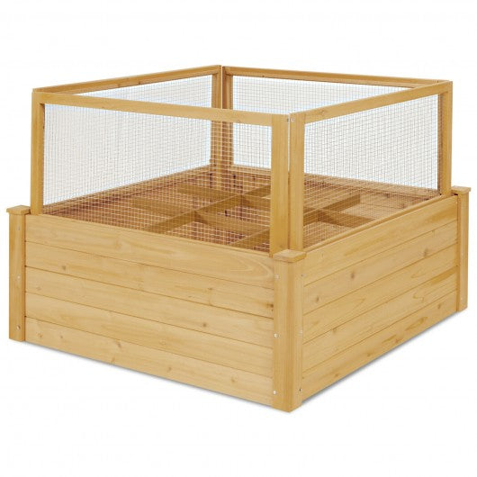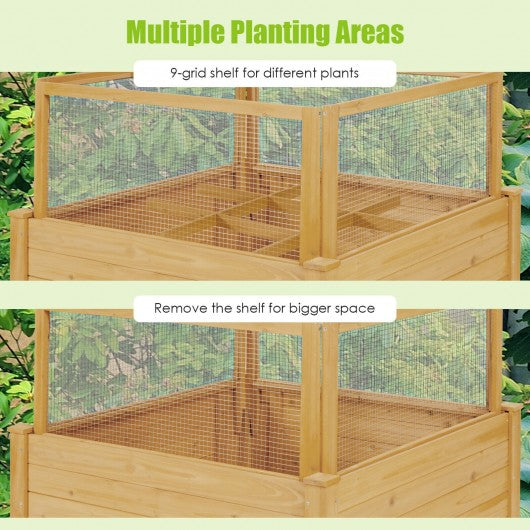 Wooden Raised Garden Box with 9 Grids and Critter Guard Fence