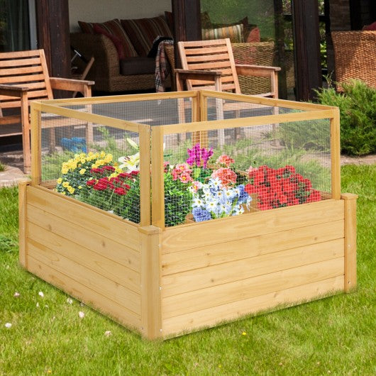 Crafted from premium fir wood the garden bed has excellent performance of weather and pest resistance providing a long lifespan.   With the size of 42" x 42" x 16.5" this garden bed offers you a spacious planting area. Besides designed with a removable 9-grid shelf you can plant different plants as needed. More importantly critter guard fences on each side protect your plants well from small animals or pets. This garden bed can be used both outdoors and indoors such as backyard deck balcony and so on.   If you are looking for a wooden garden box like this do not hesitate to place an order!   100% natural fir wood to resist weather and pest Large planting space with 9-grid shelf for convenient planting Screw connected structure ensures stability Spray painted surface is smooth and waterproof Widely used in the backyard garden balcony etc. Critter guard fences to keep small animals away Convenient to clean and maintain Easy to assemble with detailed instruction
