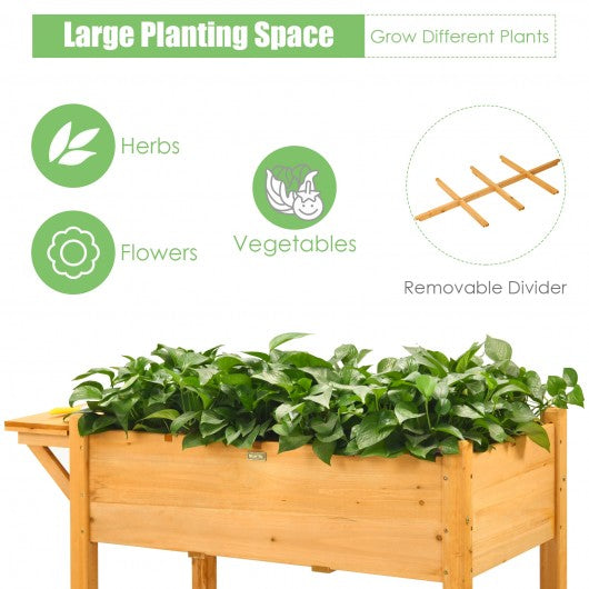 Made of natural fir wood with water paint the raised planter bed ensures great durability for long-term use with minimum maintenance. The 8-grid shelf provides a separate area for growing different plants like herbs flowers and vegetables. In addition your gardening tools and accessories can be stored on the bottom shelf and foldable tabletop. More importantly the user-friendly height of this planter can reduce stress on your back and knees during gardening work. The raised planter bed is designed with drainage holes to drain out excess water conveniently. In addition the assembly is quite easy with detailed instruction. If you are looking for a product like this do not hesitate to place an order! High quality fir wood is durable enough for long time use Adequate planting area with 8 grids for different plants Solid legs provide extra stability and strong weight capacity User-friendly height design for comfortable gardening Drainage holes drain excess water and protect roots from rot Spray painted surface is environmentally friendly odorless and waterproof Ideal for your patio garden balcony etc Easy to assemble with detailed instruction Installation guide