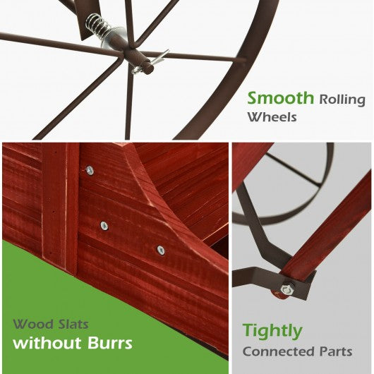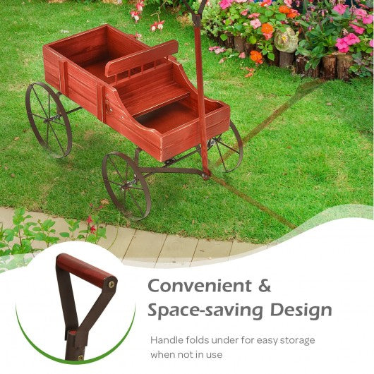 Wooden Wagon Plant Bed With Wheel for Garden Yard-Red