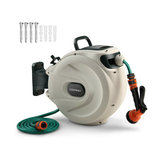 Wall Mounted Retractable Garden Hose Reel with Hose Nozzle