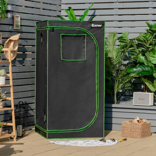 32 x 32 x 63 Inch Mylar Hydroponic Grow Tent with Observation Window and Floor Tray-Black