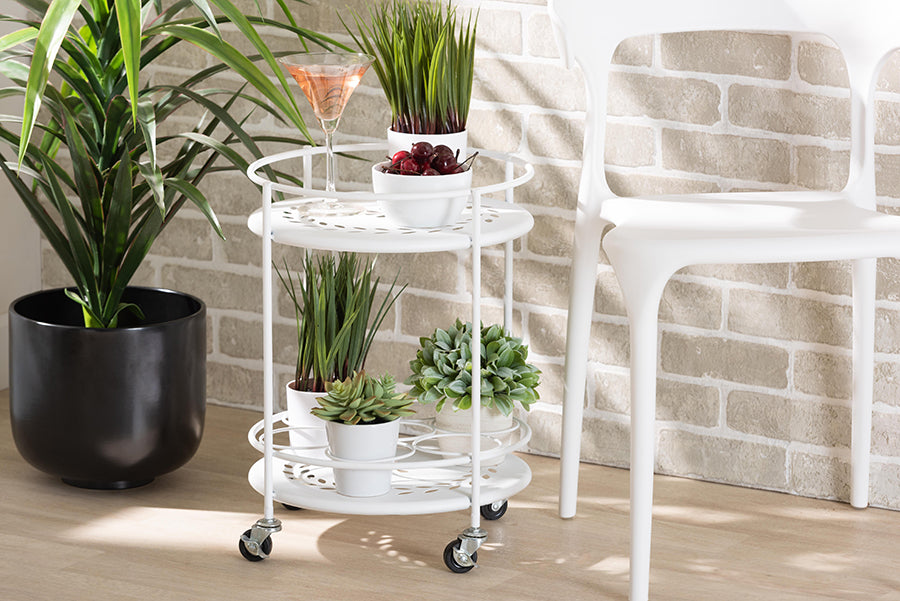 Baxton Studio Dallan Modern Industrial White Metal 2-Tier Kitchen Cart