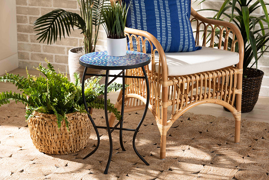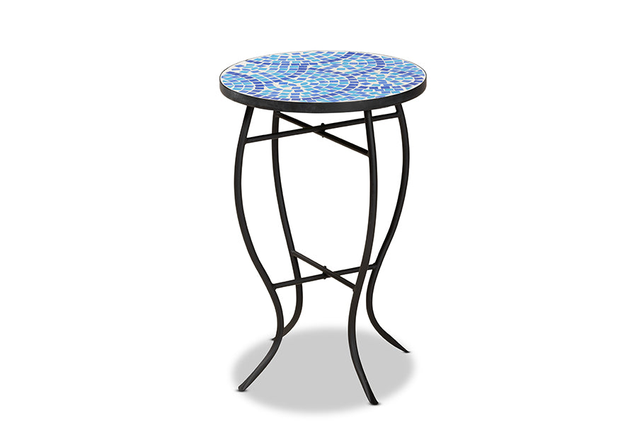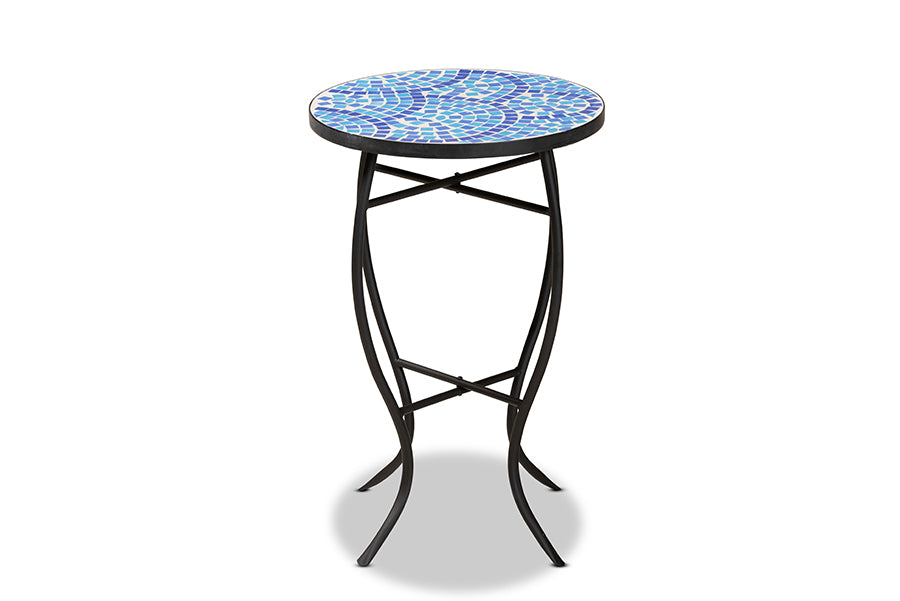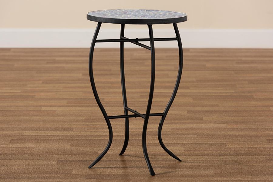Baxton Studio Gaenor Modern and Contemporary Black Metal and Blue Glass Plant Stand