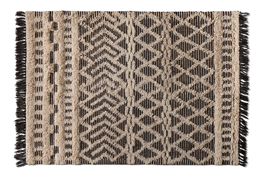 Baxton Studio Heino Modern and Contemporary Ivory and Charcoal Handwoven Wool Area Rug