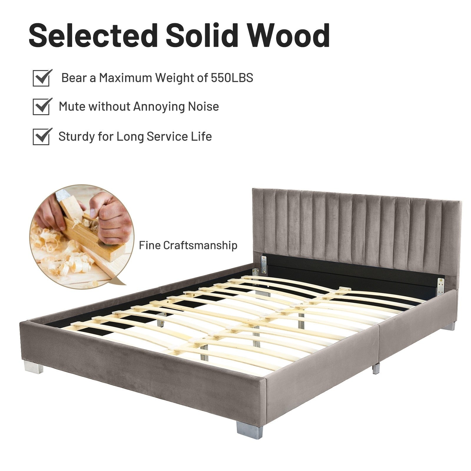 This full platform frame creates a sophisticated but modern ambiance that works well in all kinds of bedroom or guestroom styles. This bed frame with sturdy wooden slats brings a safe and comfortable sleeping environment for you and your guest. Thanks to the softly upholstered bed frame you can enjoy your sweet dream after a long time working. What's more the high-quality slats keep you away from annoying squeak sand give you a quiet rest environment. You can quickly finish the installation without adding. This minimalist-designed bed frame can be a nice addition to your bedroom guestroom and hotel. If you are looking for a full platform frame like this do not hesitate to place an order! Thickened frame with solid slats support for long service life The padded frame and velvet cover adds extra comfort and elegance Ergonomically backrest to relax your back and waist Widened wooden slats help you get rid of an annoying squeak Plastic buckles and clear instruction for simple installation Easy maintenance with smooth velvet surface Suitable for various occasions such as bedroom and guestroom