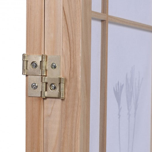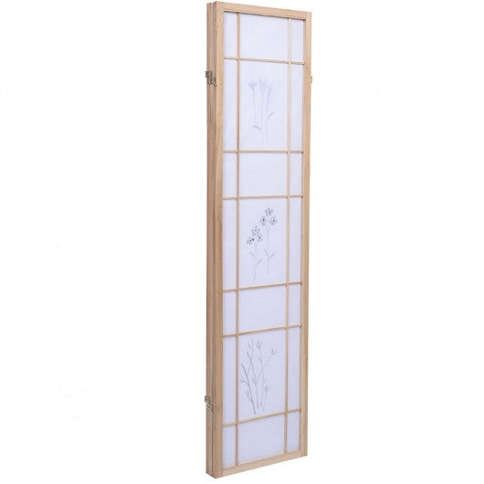 3 Panels Printing Flower Solid Wood Room Screen-Natrual