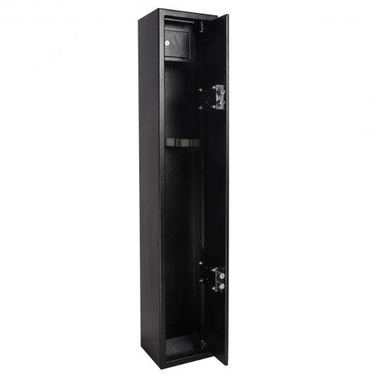 This gun storage cabinet is an ideal choice for you to keep the guns safely with it.Store your hunting equipment and other weapons safely in this gun storage cabinet. It features two locks to protect it. It is easy to assemble and comes with form-fitting parts that are fastened together. The iron top shelf provides for additional storage of internal ammo safe.If you are looking for such a storage cabinet don't hesitate to buy this one home. 51-inch iron security cabinet Holds 3 rifles or shotguns 2-point locking system lock for greater security Individual lock for the ammo box Unit is easy to assemble Pre-drilled mounting holes in the back of the gun security cabinet allow for easy attachment to the floor or wall