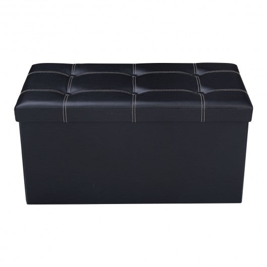 This ottoman is deal for storing and organizing goods and for where extra storage space is required. Covered with PVC leather the lightweight ottoman has high density sponge and a strong wood construction. It is a multifunctional ottoman that can be used as a deft folding storage box or an extra seat around the home. Besides the pouffe with large storage space has a comfortable padded lid and can be folded away when not in use. The stylish design will suit for any contemporary home decoration. The storage box is ideal for storing and organizing your toys blanket books and daily accessories etc. Do not hesitate to buy one! Brand new and good quality Simple faux leather folding ottoman storage box Functional foldable design (sides fold down for saving space) Delicate design and comfortable seat