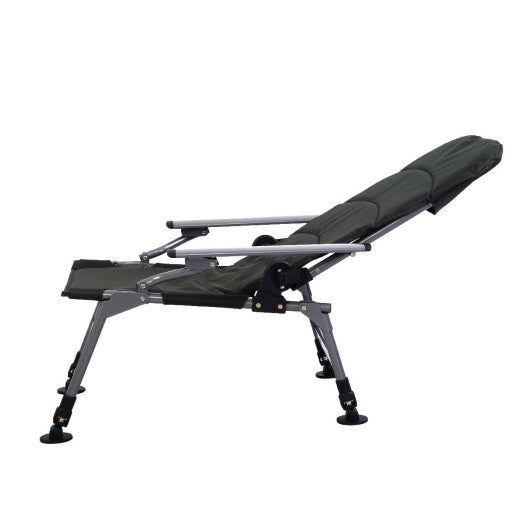 This fishing chair is perfect for fishing outdoor all day comfortably. The back position can be adjusted to meet your own needs. It features foldable design and strong base frame with anti-skid feet. It comes with a oxford carry bag and the back is filled with foam inside. It can be foldable and portable for easy storage to save room. With the free carry bag you can carry it with convenience. Welcome! High quality with competitive price can be realized here! Don't hesitate to buy it! Brand new and high quality Foldable and portable for easy storage to save room Strong base with steel frame Filled with foam in the back to fish comfortably Multiple functions in various outdoor activities such as fishing camping etc Arm green color is ideal for resistance to dirty Back positions can be adjusted from 33.5" to 39.4" 6.5 inch adjustable feet height Free carry bag for easy carry with convenience