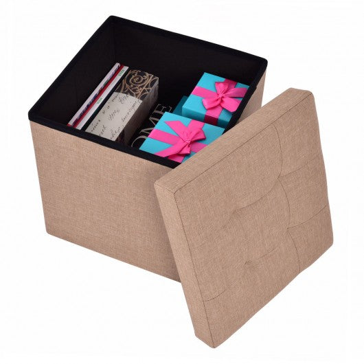 Now you can keep your house organized and tidy with our modern folding storage ottoman. The removable padded lid is detachable allowing you to fold the ottoman flat and store it anywhere. Also the sturdy and durable construction allows it withstand up to 330 lbs of weight and ensures its long-term service life. Crafted with 100% polyurethane foam its cushioned top offers a comfortable sitting experience. The contemporary style of the piece matches numerous decor styles so you can use it in your living room bedroom or office. You also can use the top as a footrest or extra seating. From media accessories to books and magazines this unit stores items so that you can de-clutter your living area and enjoy lounging in style. If you are looking for the storage ottoman don't hesitate to buy it now! Folding design provides more storage space when not in use Large storage with a removable lid is easy to access Cushioned comfortable top with high-density foam is soft and comfortable Sturdy MDF construction can hold up to 330lbs of weight Easy to clean with breathable faux linen Multifunction use as a storage cube footrest stool or extra seating for guests Perfect decoration for living rooms bedrooms offices and other places Easily to fold and unfold without additional tools needed