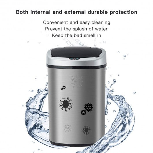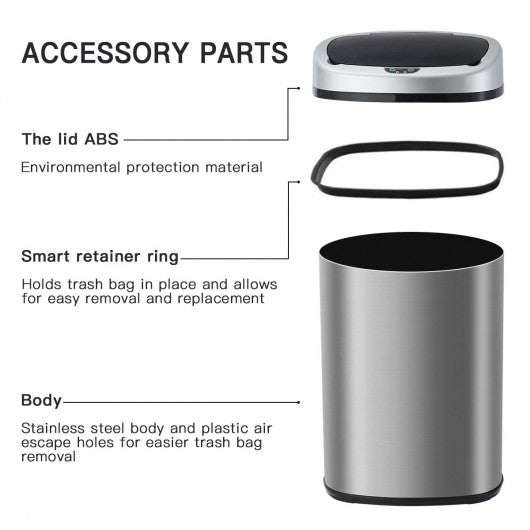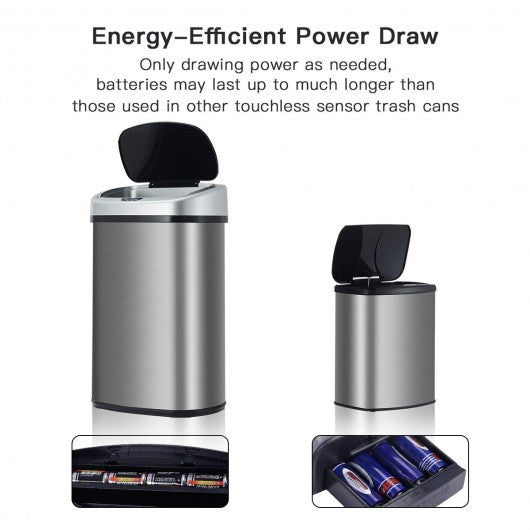 This 2-in-1 touchless trash cans will meet your family's needs. You can use them almost in any place you want such as kitchen office bathroom dorm room or kid's room.   This set comes with 2 trash cans -- one kitchen size (13 gallon) and one bathroom size (2.3 gallon). These trash cans are made of stainless steel which are stable and easy to clean. They feature anti-fingerprint commercial-grade stainless-steel sides with snug-fitting plastic tops. The water-resistant infrared motion sensor detects motion within inches of sensor range.   These two trash cans use the most advance sensor technology. They open automatically when your hand or debris nears the infrared induction area. After your hand or debris moves away their lids close in seconds. They also seal odor in and eliminate cross-contamination of germs with touch-free operation. What's more the energy-saving technology keeps battery life longer in normal daily usage.   This set of 2 trash cans comes at good price. Do not hesitate to buy one!   High quality and brand new Stainless-steel touchless trash cans convenient and clean Seals odor in and eliminates cross-contamination of germs with touch-free operation Water-resistant infrared motion sensor Comes with 2 trash cans one kitchen size (13 gallon) and one bathroom size (2.3 gallon) Stainless-steel sides with snug-fitting plastic tops Opens and closes automatically Energy-saving technology for longer battery life