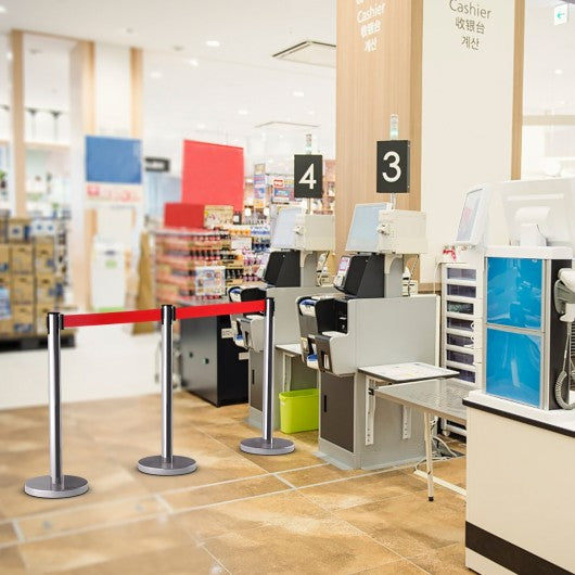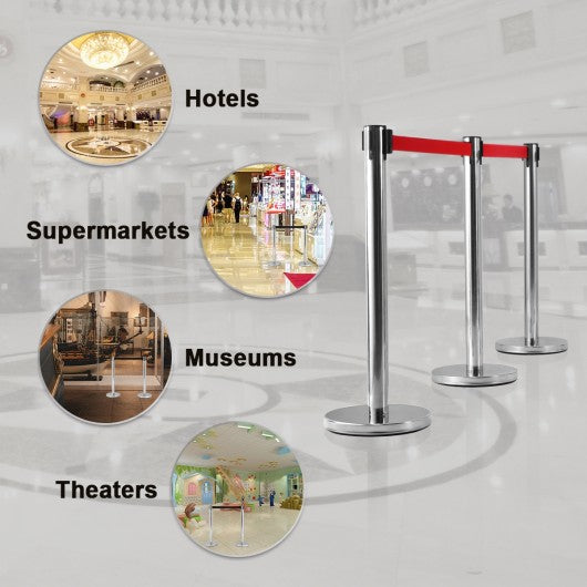 Specification: Belt color: Red Material: Stainless steel retractable barriers belt Total height: 35" Pole diameter: 2.5" Base diameter: 13" Belt length: 78" Belt width: 2" One base weight: 11 lbs Total weight: 76 lb Package includes: 6 x Retractable post
