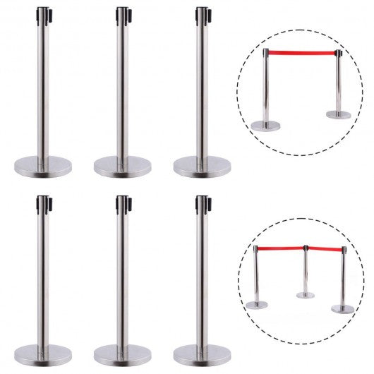 6 Pcs Crowd Control Barrier Stanchion Posts Queue Belt