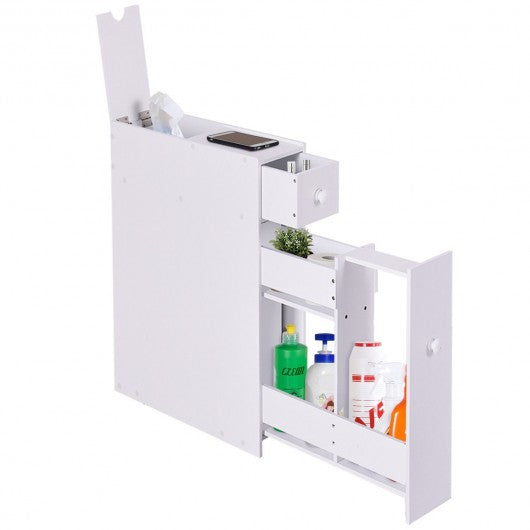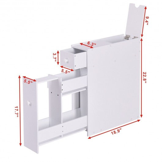 This bathroom floor cabinet is a great space saver with a simple classic style that blends with any decor. This white storage cabinet features crisp clean lines and functional storage. It coordinates well with any bathroom decor also adds more storage space to the bathroom or clears the clutter from the counter top. The MDF panel will be durable and sturdy. With one top drawer and a second deep-set sliding drawer with two built-in shelves this standing floor bathroom cabinet is a great way to eliminate clutter from any bathroom in your home. It?s an ideal way to store toiletries cleaning products and bathroom accessories out of plain sight. Do not hesitate to buy one! Slim design allows this cabinet to fit into tight space Offer other space for your things Solid mdf construction durable and sturdy Lightweight slide-out bathroom floor cabinet helps you to make full use of space Durable and sturdy construction Ideal for bathroom living room kitchen and bedroom A great addition to enhance home d?cor Accessories are not easy to get rusty Easy to assemble according to instruction by yourself