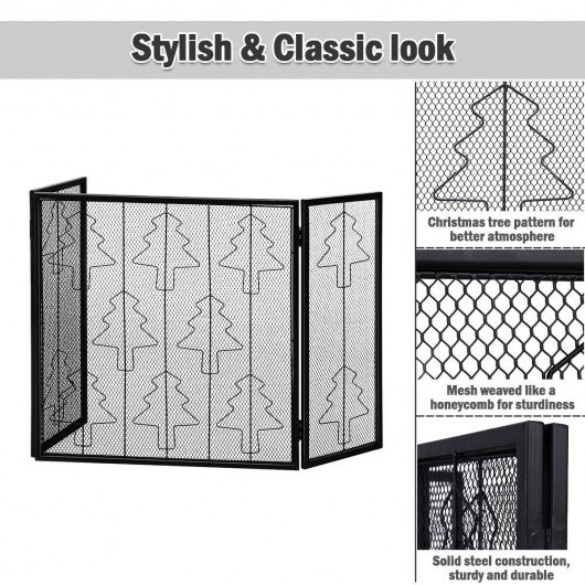 This 3 panel fireplace screen will enhance the beauty of your fireplace and It offers great protection against the sparks from the fire keeping them inside the fireplace and protecting your home safe from fire and spark flying damages. This fireplace screen will help you to create a warm and inviting focal atmosphere for all to enjoy. Featuring a heavy steel frame and powder coating finish this fireplace screen is durable and has a long life span. With a Christmas Tree pattern this fireplace screen is not only a functional protection but also a decoration to your home. Do not hesitate to buy one! High quality and brand new Solid steel frame durable and sturdy 3 panel fireplace screen Safety for use around fireplaces grills wood burning stoves etc Christmas Tree pattern design a great decoration to home Featuring a heavy steel frame and powder coating finish this fireplace screen is durable and has a long life span With a Christmas Tree pattern this fireplace screen not only a functional protection but also a decoration to your home With Folding feature Light weight