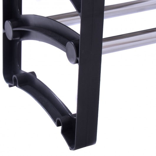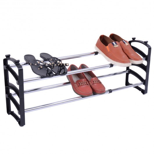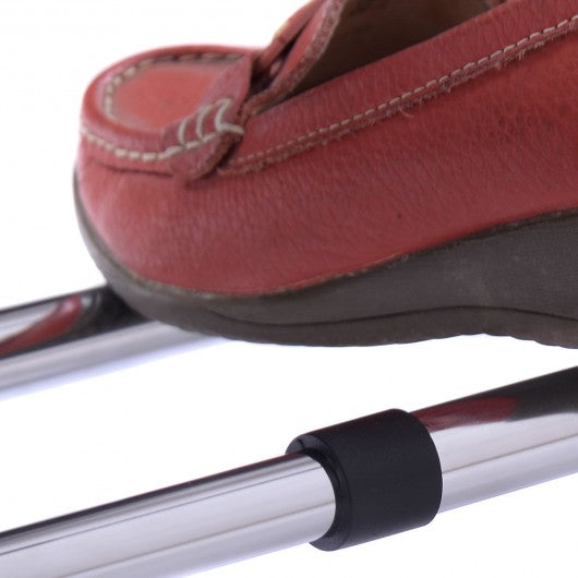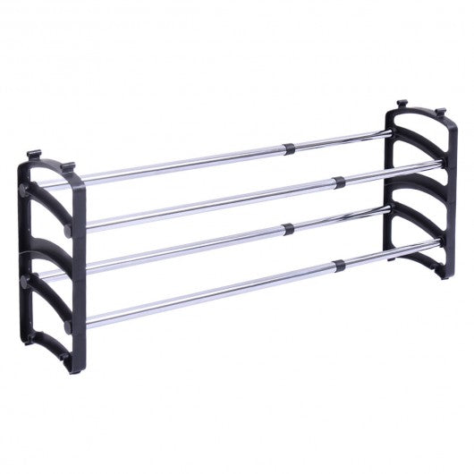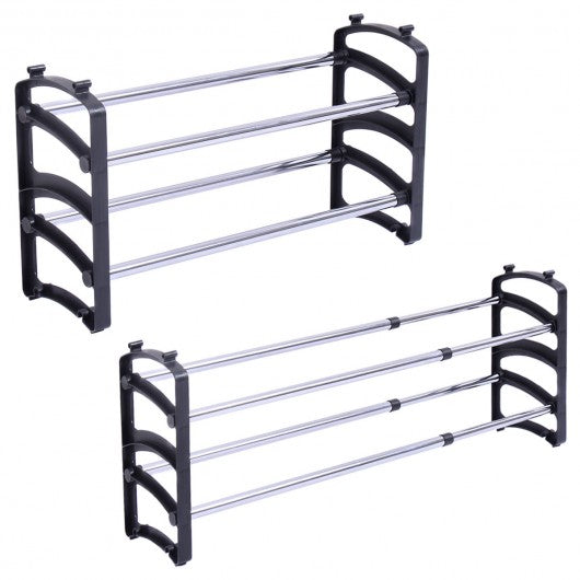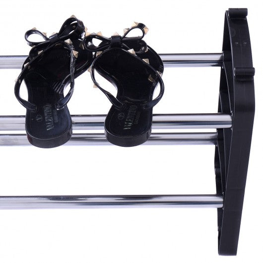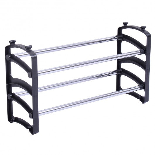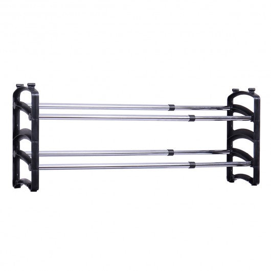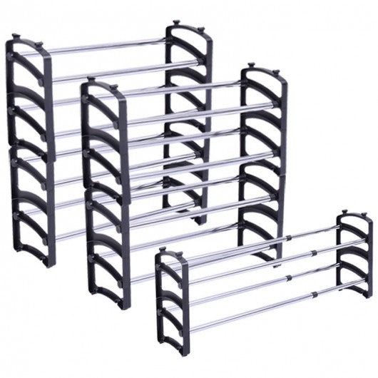 The stackable shoe rack designed with durable metal bar and plasitc end is a perfect solution for the people who has a lot shoes. This shoe rack features a unique design and classic appearance adding a sense of elegance to your home. Thanks to its sturdy construction the rack is built to provide years of durable using. The open design of the shoe rack is convenient to use and extremely efficient ensuring your shoes will remain neat and orderly at all times. It is suitable for any types of different shoes no matter large or small. It helps you easily locate the shoes you are looking for and prevents from time-consuming. High quality and brand new Portable shoes rack Plastic end and metal bars support the rack All shoes tower rack is detachable Stackable and adjustable width in your needs Assembly required