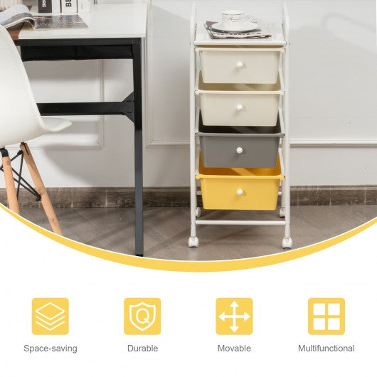 4-Drawer Cart Storage Bin Organizer Rolling with Plastic Drawers-Yellow
