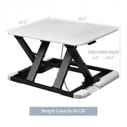 Specification: Color: White / Black Material: MDF + PVC + Powder Coated Iron Weight capacity: 44 lbs Overall dimension: 26.5" x 22.5" x (2.5"-16.5") (L x W x H) Package Included? 1 x standing desk
