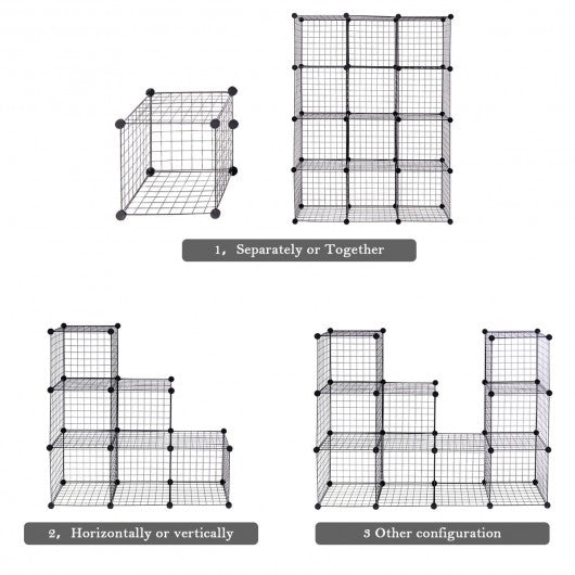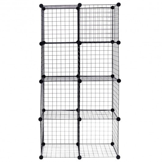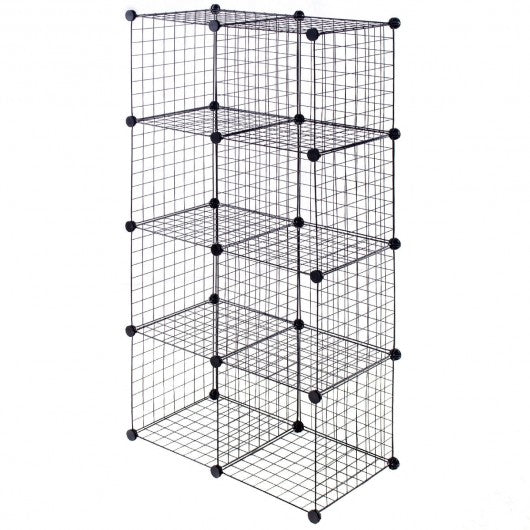This is brand new and high quality 8 pcs set wire storage cubes made from a strong and slightly flexible wire that can withstand plenty of weight and matching heavy connectors for holding the wire grids together.   The cubes are interlocking giving you multiple stacking options so let your imagination take over. Various cube configurations can be made with this flexible design. It can keep your home neat tidy and organized and to offer ultimate convenience in household organization. This storage unit is simple and easy to assemble and will provide you with a very sturdy fully functional storage shelf.   Don�t hesitate to buy it.   High quality and brand new Combine multiple sets for additional storage Open wire construction permit air circulation Made from steel wire painted black and matching heavy duty plastic connectors Real DIY storage cube Multi-function storage and display High capacity organized Easy assemble and disassemble for using and storing