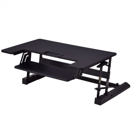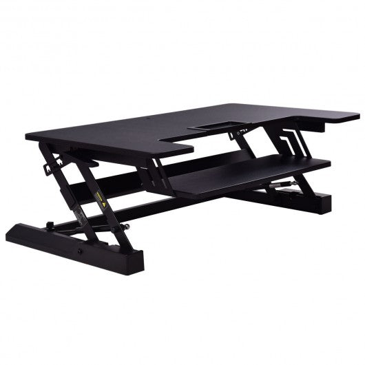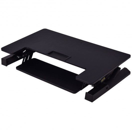 This height-adjustable desk with innovative design is a perfect work station for home/office use. Featuring a solid construction and a smooth desktop this desk is very stable and easy to clean. The two-tier design with separate keyboard/mouse desk gives you plenty of room for accessories and its height is fully adjustable for your comfort while working. This modern and stylish computer table also takes little space on your room or office. It will be very convenient for your working and perfect for home or office use. Don't hesitate to buy it now! Brand new and high quality Durable MDF board construction With a pen slot to avoid your pen slide Standing desk is designed to accommodate larger workspace needs Two-tier design gives you an upper display surface for your monitor and a spacious lower keyboard and mouse deck Height-adjustable Occupy little space with the folding design Portable and practical Waterproof and stain resistant special work surface Compact design durable and flexible Assembly required