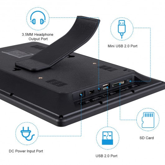 Specification: 7" Color: Black Material: ABS Product weight: 1.3 lbs Product dimensions: 8" x 5.6" x 0.8" (L x W x H) Screen size: 7" Voltage: 100-220V 50/60HZ Image resolution: 1024*600 Aspect ratio: 16:9 Power supply: DC power supply 5V 1.5A/2A Supported image format: JPG JPEG Supported video format: RM RMVB MKV MOV M4v MPG FLV PMP AVI VOB.DAT MP4 3GP. Supported audio format: MP2 MP1 WVA OGG APE FLAC AC3 RA AAC. Operating language: English French German Russian Italian Spanish Portuguese Hungarian Memory card: Compatible with SD/MMC card (card is not included) Package includes: 1 x Digital Photo Frame 1 x Remote Control 1 x Support 1 x Instruction 8" Color: Black Material: ABS Product weight:1.5 lbs Product Dimensions: 8.2" x 7" x 0.8" (L x W x T) Screen size: 8" Voltage:100-220V 50/60Hz Image resolution: 800*600 Aspect ratio: 4:3 Power supply: DC power supply 5V 1.5A/2A Supported image format: JPG JPEG Supported video format: RM RMVB MKV MOV M4v MPG FLV PMP AVI VOB.DAT MP4 3GP. Supported audio format: MP2 MP1 WVA OGG APE FLAC AC3 RA AAC. Operating language: English French German Russian Italian Spanish Portuguese Hungarian Memory card: Compatible with SD/MMC card (card is not included) Package Includes: 1 x Digital Photo Frame 1 x Remote Control 1 x Support 1 x Instruction 10" Color: Black Material: ABS Product weight: 2 lbs Product dimensions: 10.8" x 7.4" x 1" (L x W x T) Screen size: 10" Voltage: 100-220V 50/60Hz Image resolution: 1024*600 Aspect ratio: 16:9 Power supply: DC power supply 5V 1.5A/2A Supported image format: JPG JPEG Supported video format: RM RMVB MKV MOV M4v MPG FLV PMP AVI VOB.DAT MP4 3GP. Supported audio format: MP2 MP1 WVA OGG APE FLAC AC3 RA AAC. Operating language: English French German Russian Italian Spanish Portuguese Hungarian Memory card: Compatible with SD/MMC card (card is not included) Package includes: 1 x Digital Photo Frame 1 x Remote Control 1 x Support 1 x Instruction 12" Color: Black Material: ABS Product weight: 2.7 lbs Product dimensions: 11.7" x 8" x 1.2" (L x W x T) Screen size: 12" Voltage: 100-220V 50/60Hz Image resolution: 1280*800 Aspect ratio: 16: 9 Power supply: Dc power supply 5V 1.5A/2A Supported image format: JPG JPEG Supported video format: RM RMVB MKV MOV M4v MPG FLV PMP AVI VOB.DAT MP4 3GP. Supported audio format: MP2 MP1 WVA OGG APE FLAC AC3 RA AAC. Operating language: English French German Russian Italian Spanish Portuguese Hungarian Memory card: Compatible with SD/MMC card (Card is not included) Package includes: 1 x Digital Photo Frame 1 x Remote Control 1 x Support 1 x Instruction