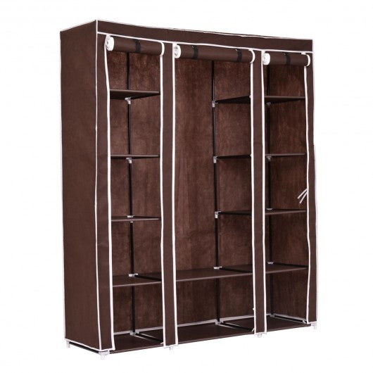 70" Portable Closet Storage Organizer Clothes Wardrobe-Brown