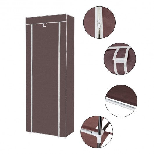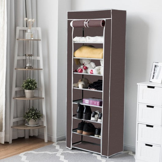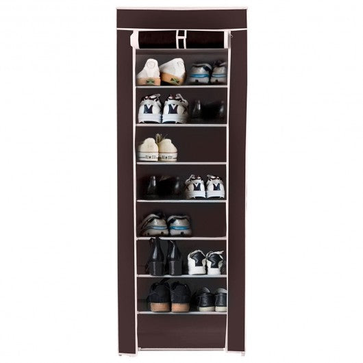 10 Tier Space Saving Shoe Tower Rack with Fabric Cover-Brown