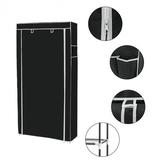 This shoe rack is designed to provide a great storage solution for your collection of favorite footwear. Made of metal pipe non-woven fabric and plastic connector it can hold numerous pairs of shoes. The shoe rack has a zippered cover which can keep your shoes away from dust with units snap together for easy assembly and no tool required. This innovative and lightweight space saving shoe rack can be placed in a cubby closet mudroom or busy entryway to keep shoes or accessories accessible. If you are looking for a shoe rack don't hesitate to buy this one! Brand new and high quality Made of metal pipe non-woven fabric and plastic connector Shoe rack with zippered cover keeps your shoes away from dust The side pockets designed to store shoe key or other debris Remove one layer as you need 9 layers it can store up to 36 pairs of shoes Perfect for hallway garage living room bedroom or anywhere else Assembly requirement